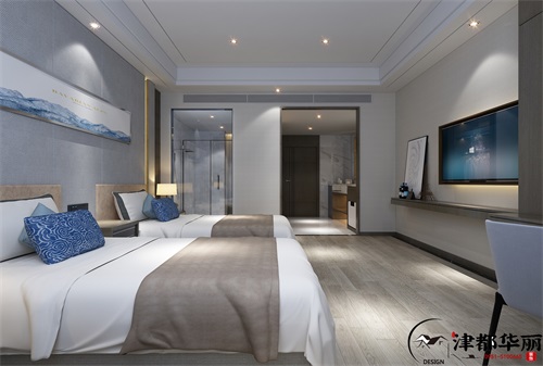 本案的裝修風格在簡潔時尚的基礎上,又多了一些獨特的藝術造型設計,大廳的設計都是帶有弧形圓形的造型,非常的個性別致,墻面和地面用大理石鋪設,時尚大氣,但大理石堅硬,大面積的在空間使用,會使空間有僵硬感和冰冷感,所以弧形的墻面、收銀臺以及舒適圓潤的軟裝搭配,就打破了這種僵硬感,柔化了空間,使空間既保持了潔凈時尚的大氣感,也同時擁有了溫馨舒適的氛圍。走廊公區(qū)的設計更多的是體現(xiàn)出空間的寧靜氛圍,嘈雜的環(huán)境是每個人都反感的,尤其是酒店空間,本來就是休息空間,更多的要求有優(yōu)美潔凈的環(huán)境和安靜典雅的氛圍,所以簡潔的設計手法,搭配時尚素雅的顏色,可以營造出文雅舒適的氛圍,體現(xiàn)酒店的品質環(huán)境??头康脑O計除了潔凈舒適以外,還要體現(xiàn)完善的功能性,干濕分離的衛(wèi)生巾肯定更加方便衛(wèi)生,擁有一個衣帽間也會方便顧客,還有需要工作的商務人士,為他們設計一個安靜的辦公空間,是可以得到顧客更好的認可,從每個細節(jié)去為每個顧客設身處地的著想,就可以設計出讓顧客滿意的酒店空間,因為細節(jié)決定品質。