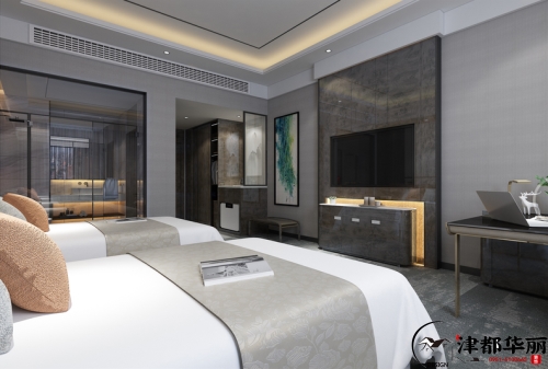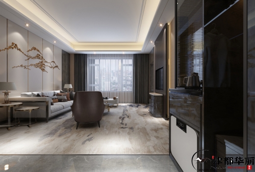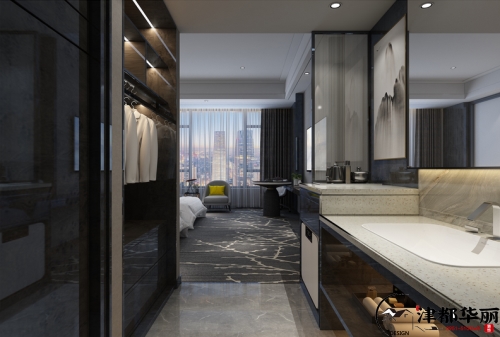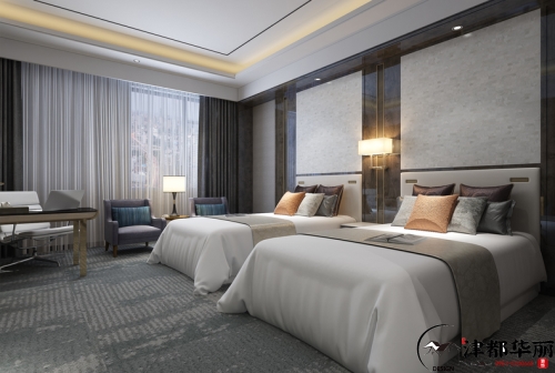 過去,酒店僅僅是旅人休息停留的臨時居所,隨著經(jīng)濟的迅速發(fā)展、生活條件的日益改善,人們對于酒店的需求也在不斷提高,基本的居住功能已經(jīng)不能滿足要求。近年來,有特色、有風格的高端型酒店正受到人們追捧,形成巨大的市場競爭力。酒店客房作為核心空間,是人們?nèi)胱『蠖毫魰r間最久的地方,留下的印象也最深刻。因此對客房的使用體驗通常也決定了客人對一家酒店的整體評價。今天帶來的案例是酒店設計,客房是顧客在酒店中最為私密的個人空間,為了給顧客營造一種家的溫馨感,客房氛圍的營造就顯得尤為重要了,而燈光作為一種有效調(diào)節(jié)室內(nèi)氛圍格調(diào)的工具,其在客房設計中起著不容忽視的作用。在客房設計當中我們通過床頭照明、臺面照明、墻面柜體照明、藝術(shù)照明等來滿足客房室內(nèi)的燈光使用功能及環(huán)境創(chuàng)造,這樣的照明組合能夠增加了室內(nèi)環(huán)境的層次感,使整個房間顯得溫暖安逸,充滿格調(diào)美。處于休息區(qū)的燈具主要設置在床頭兩側(cè),可滿足床頭簡單工作閱讀的用光需要。房間的燈具,采用落地燈、臺燈、吊燈等多種燈具組合搭配,燈具的形態(tài)和光線的營造,對于烘托整個客房的氛圍起到了十分重要的作用。